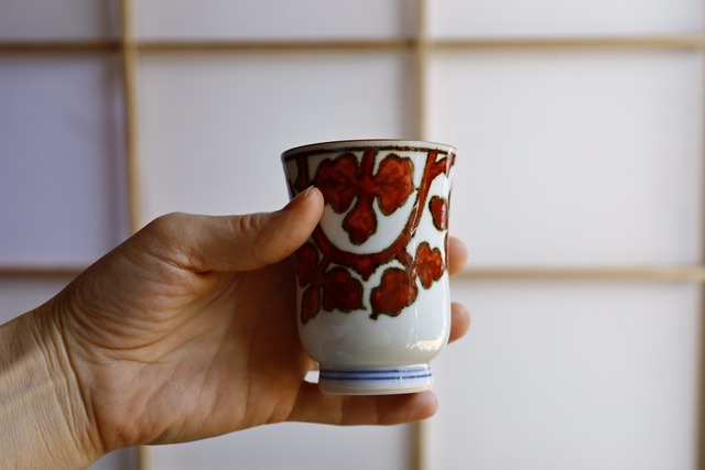 赤絵一閑人葉唐草丸湯呑 TKD040005B