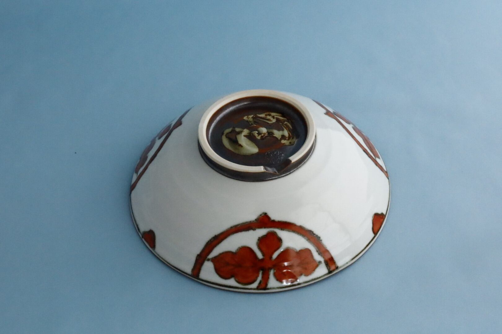 鉄絵でコツ書といって縁取りしてその中に赤絵ダミで塗りつぶしていきます。