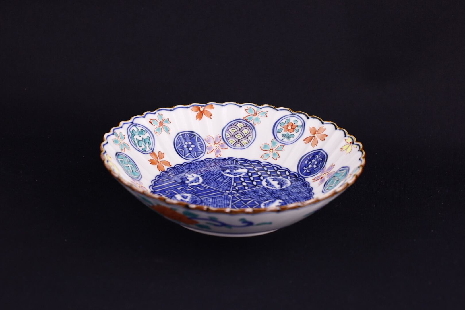 菊弁といって細かいそぎに丸紋の中に祥瑞、そして桜花をあしらった鉢です。