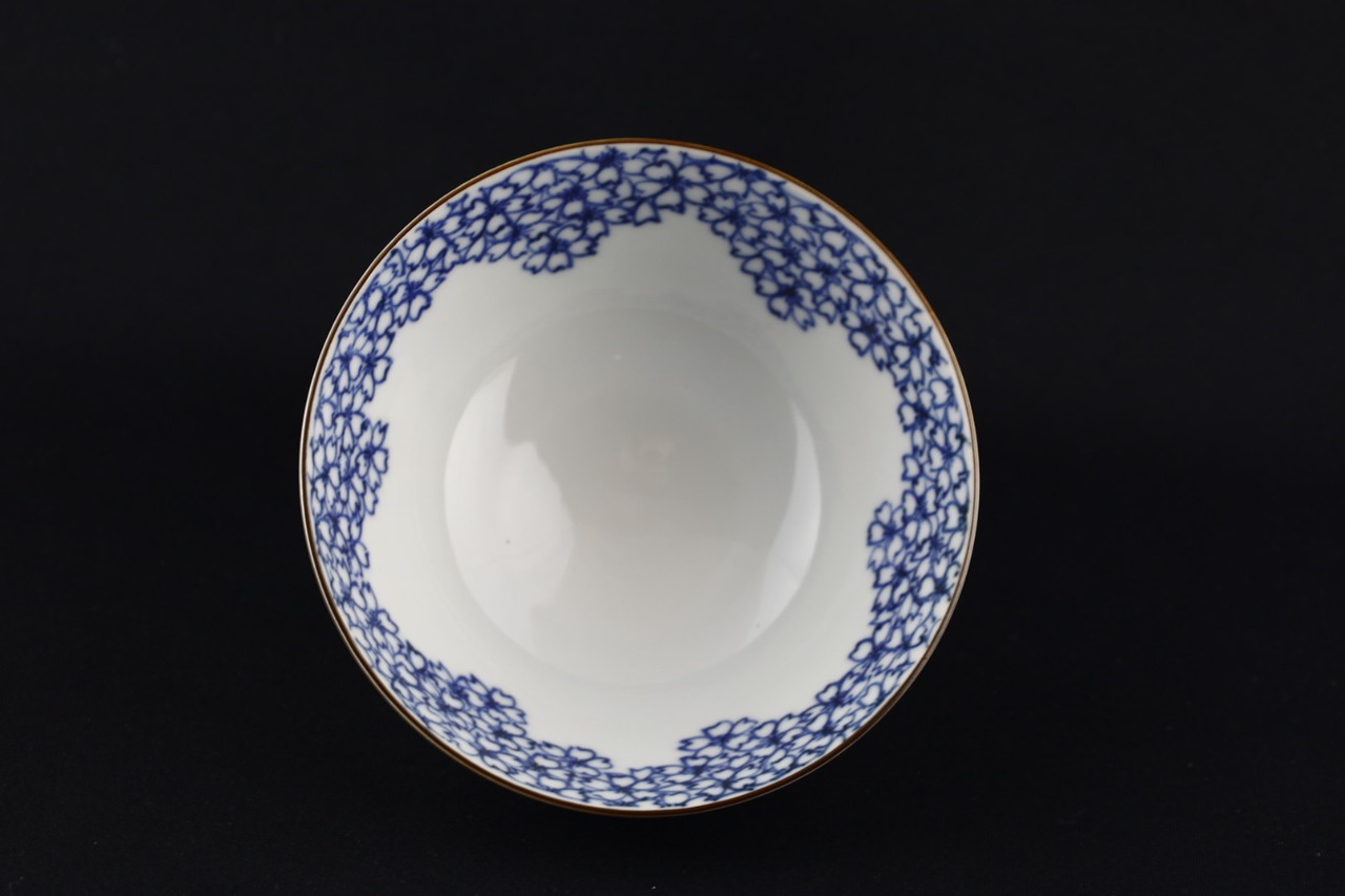 手描きで外は赤絵で桜花、内には染付の桜花を散らして描いています。