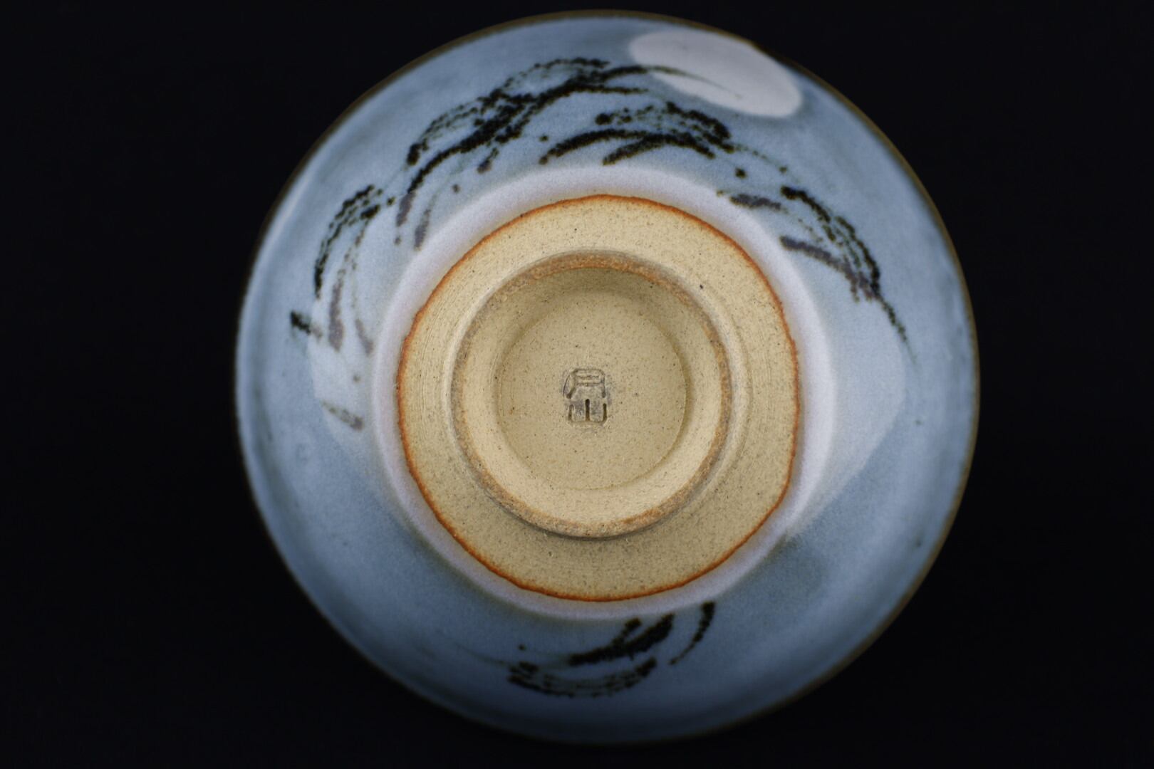 ほんのりとした蒼釉に鉄絵ですすきそして月の紋様のご飯茶碗です。