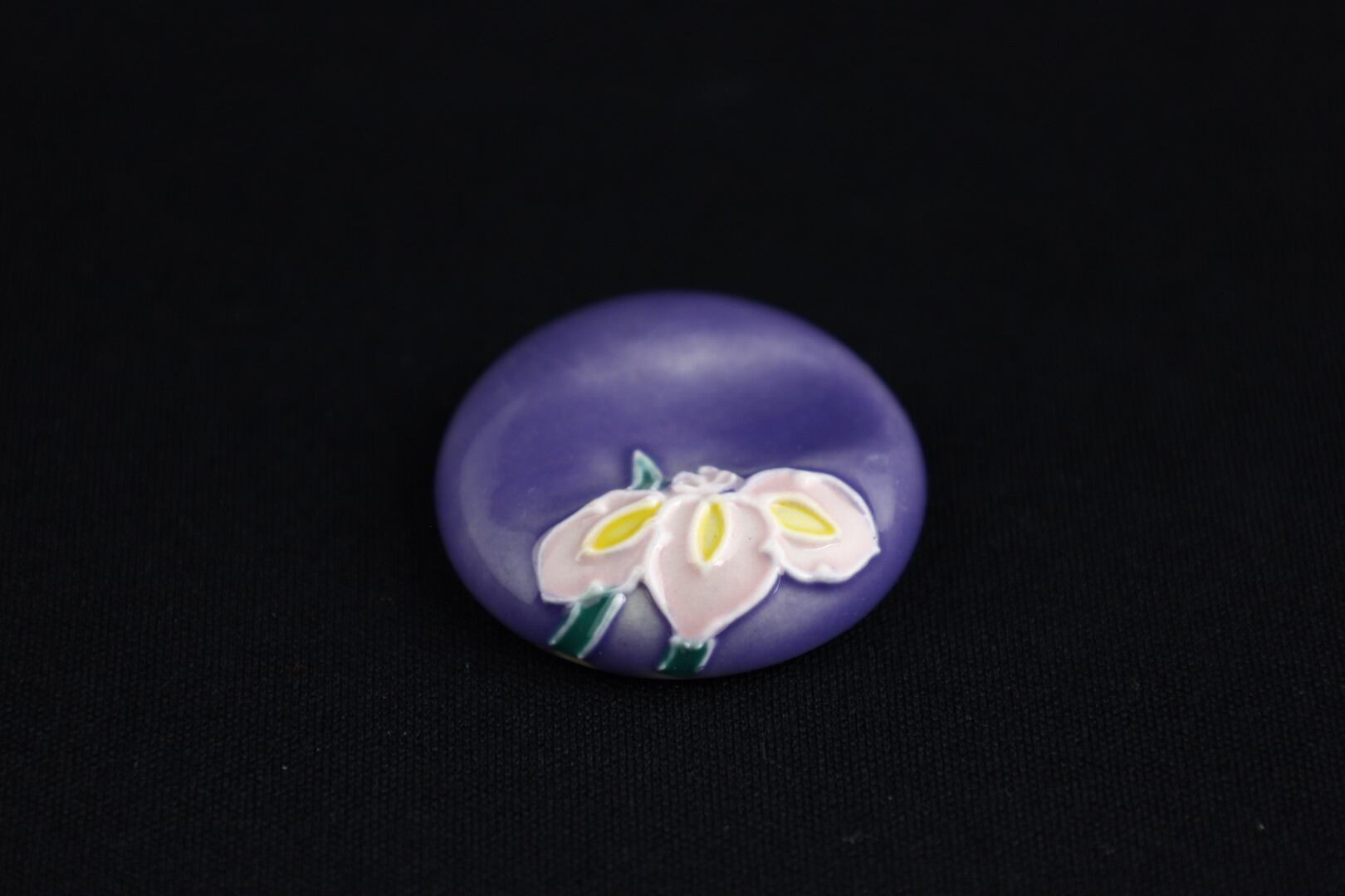 とても鮮やかな交趾(こうち)の色に一珍で花紋に交趾(こうち)で色絵付しています。