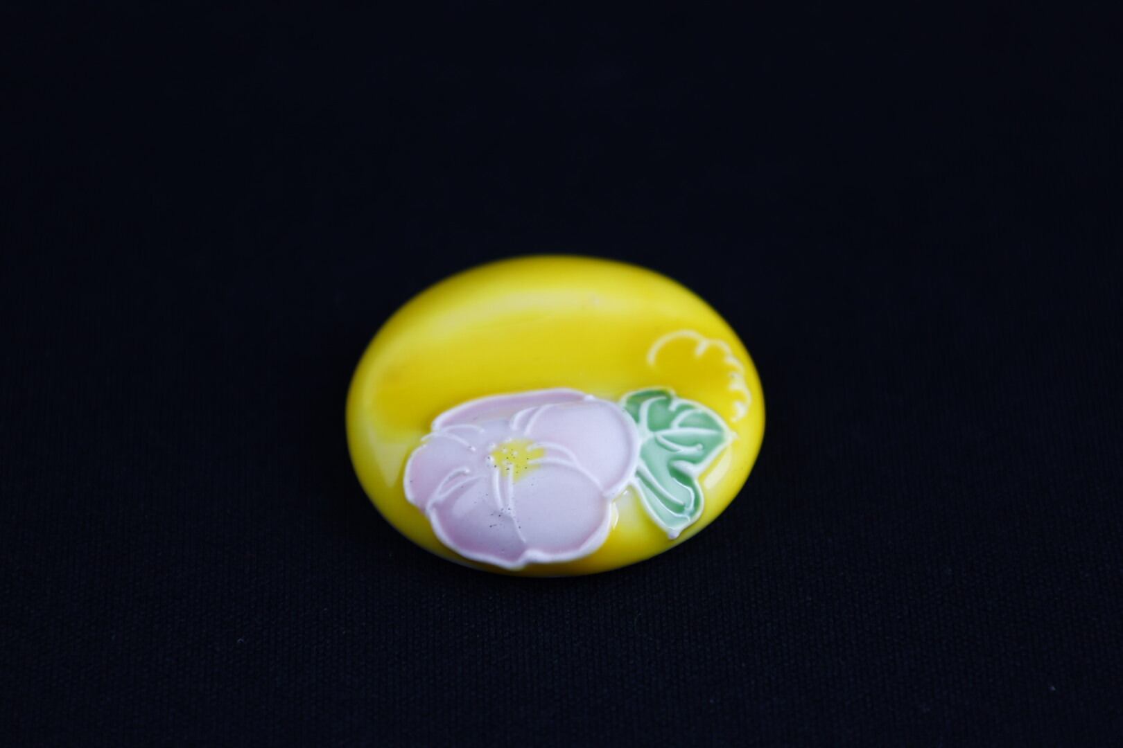 とても鮮やかな交趾(こうち)の色に一珍で花紋に交趾(こうち)で色絵付しています。
