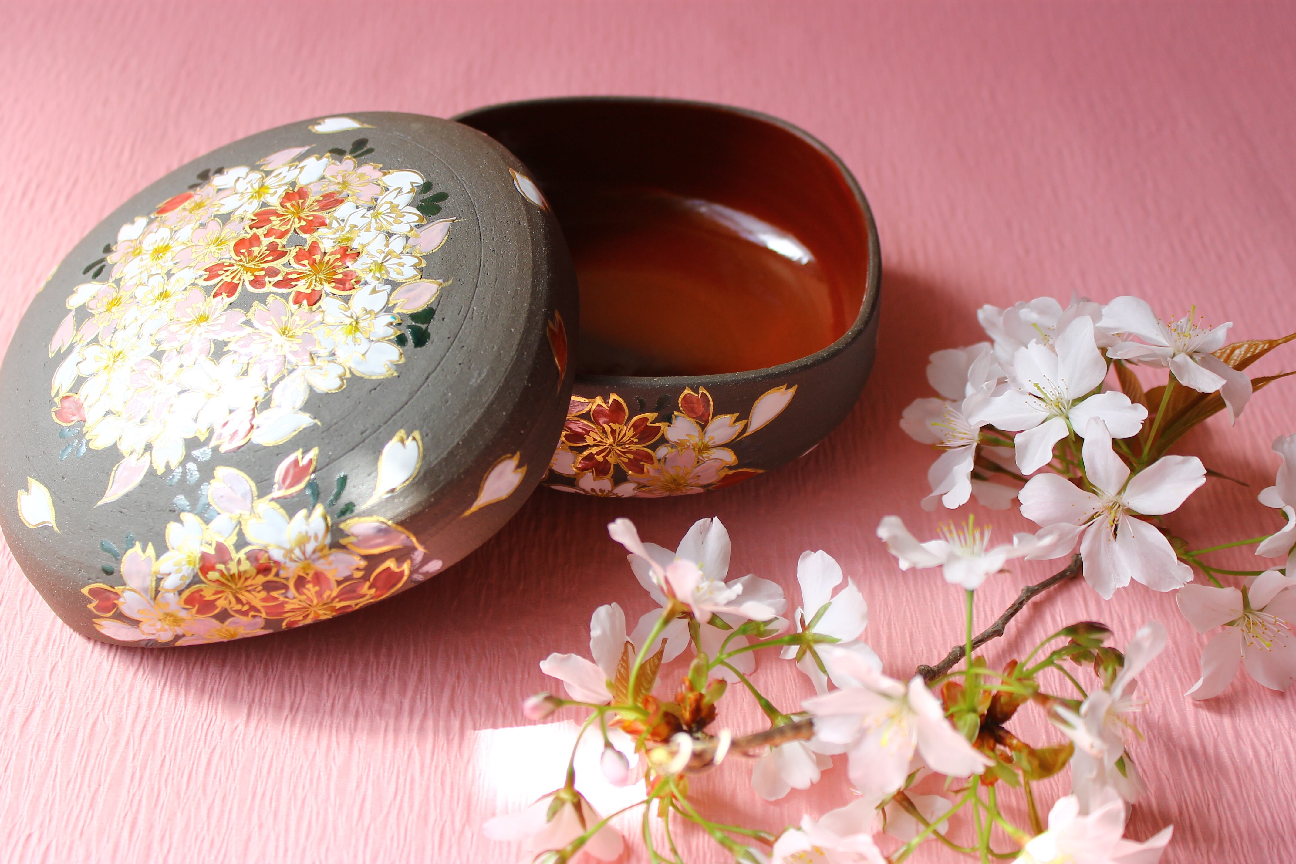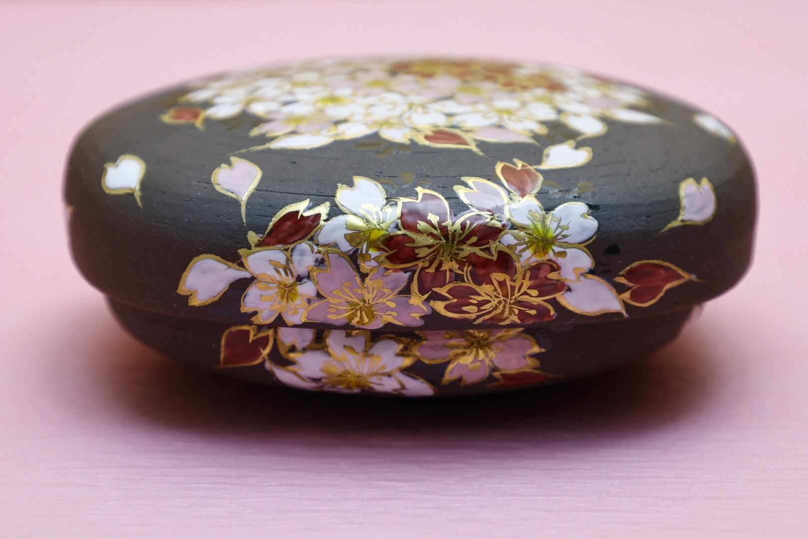 色絵金彩桜ちらし四方蓋物 TKD110051B