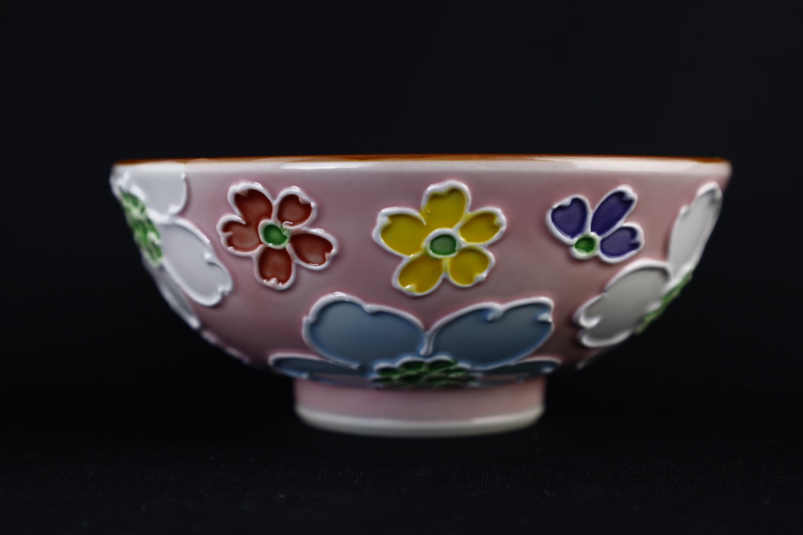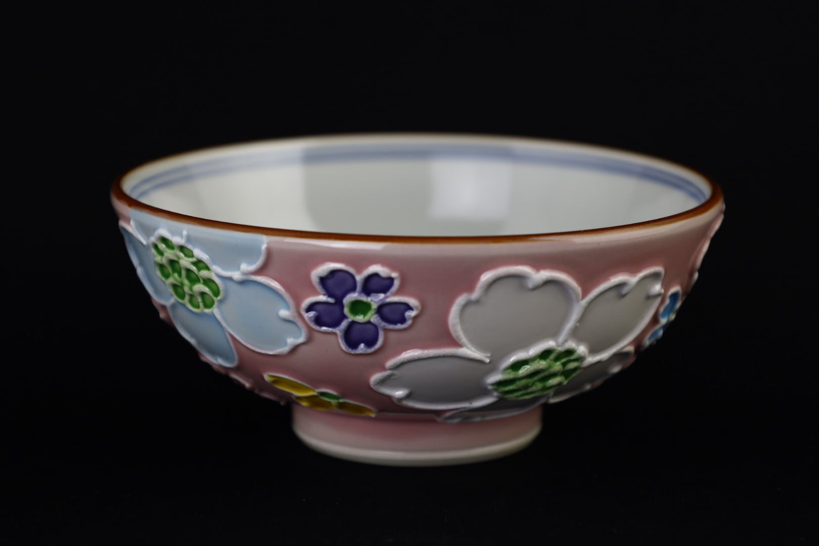 ピンクの交趾(こうち)に一珍といって枠取した桜花の中に交趾(こうち)で色絵をつけています。
