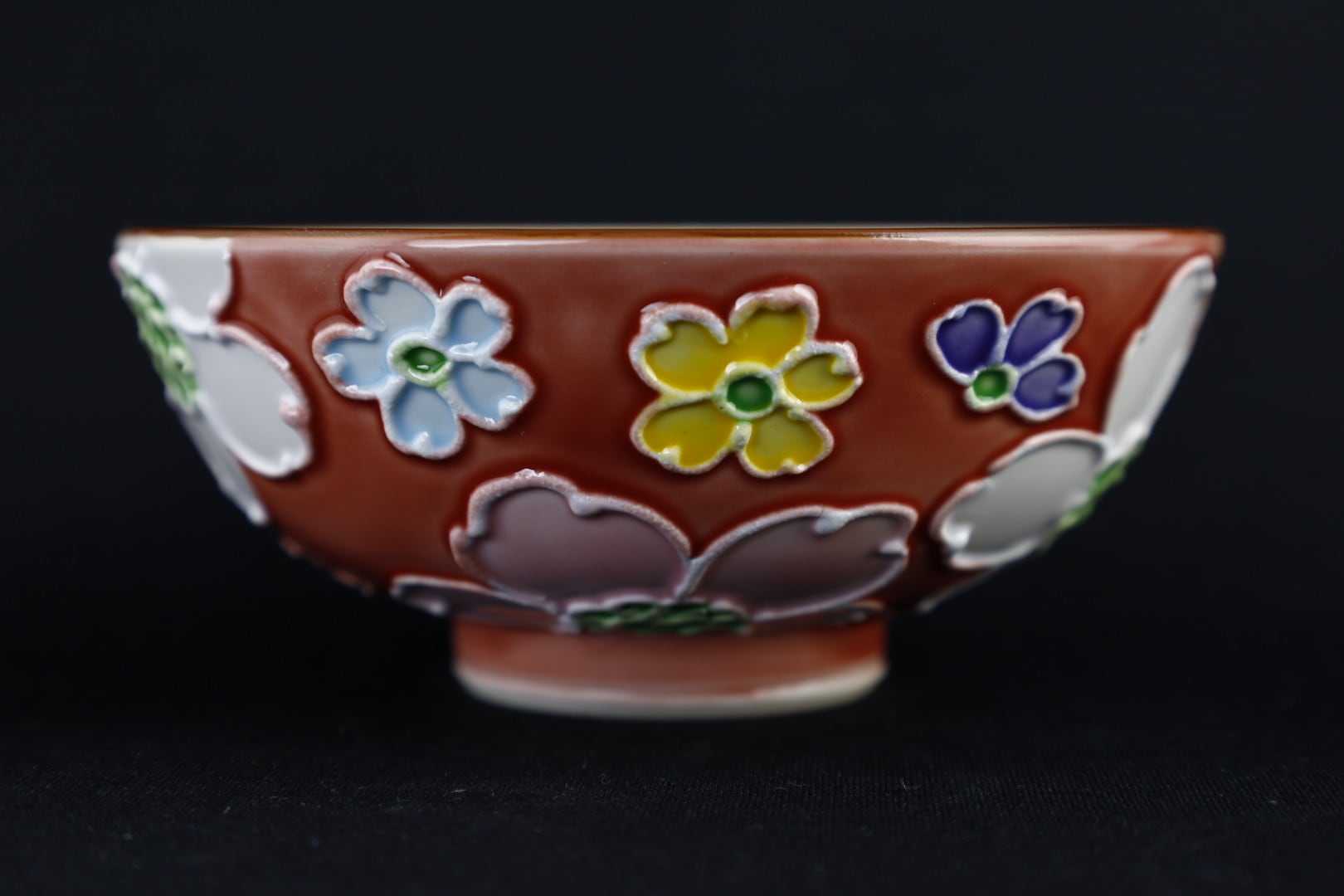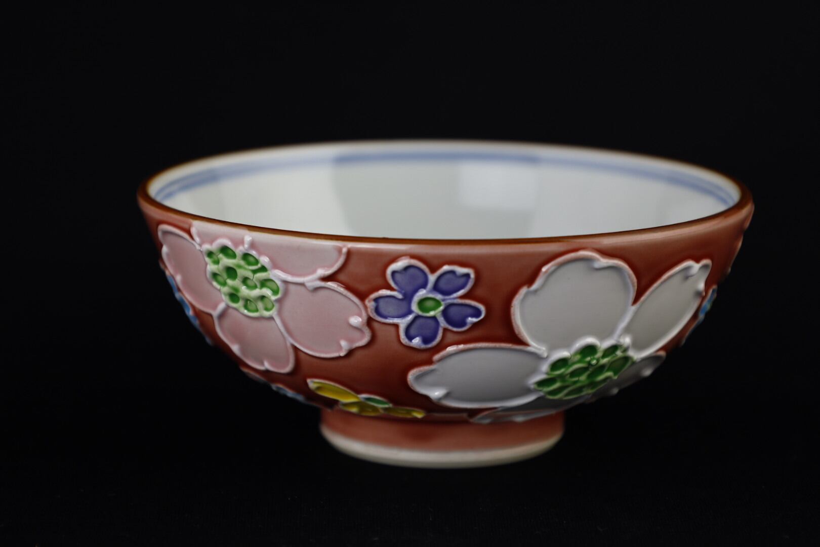 赤交趾一珍花紋飯碗 大 TKD100246B 小TKD100362B