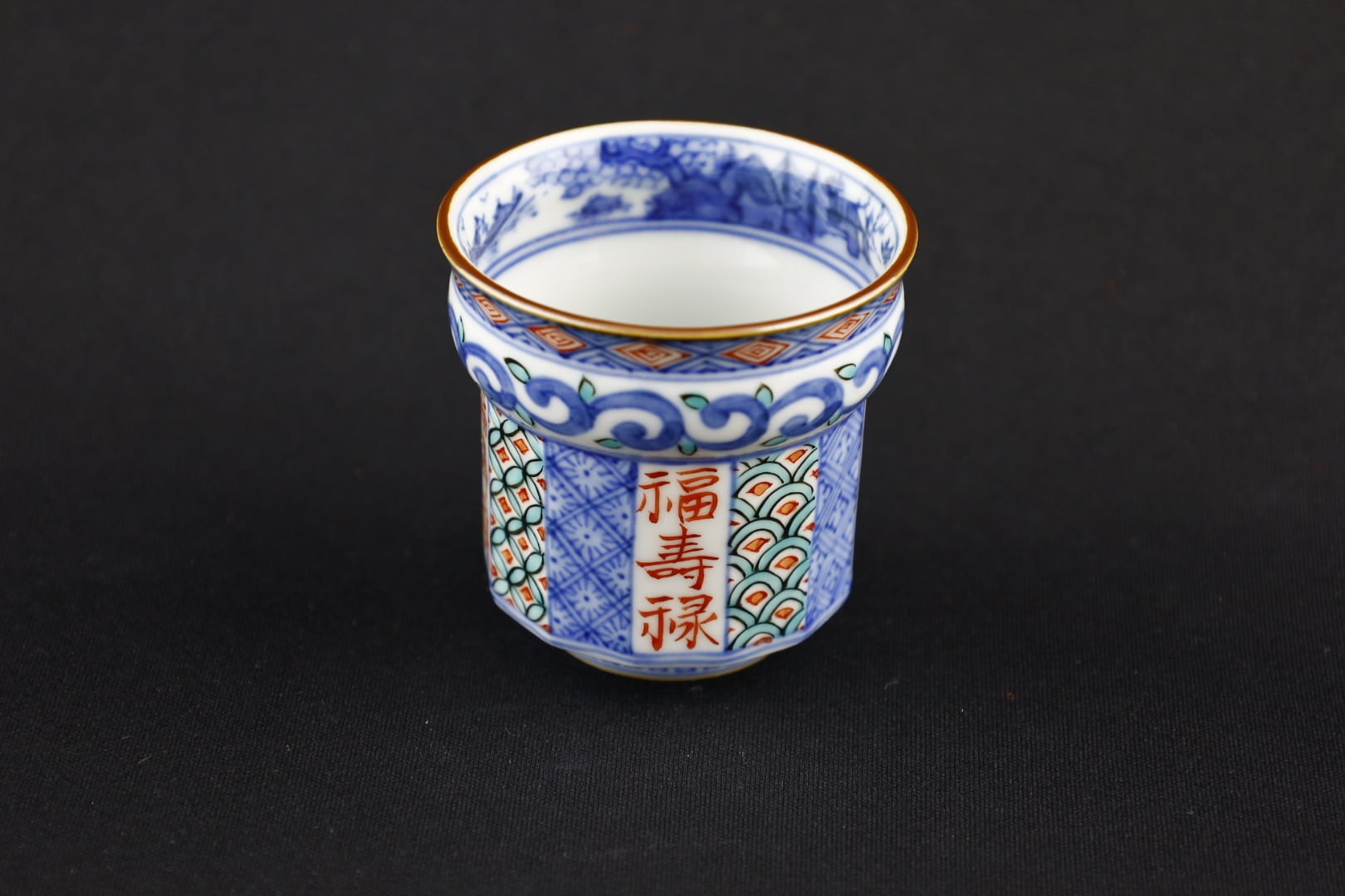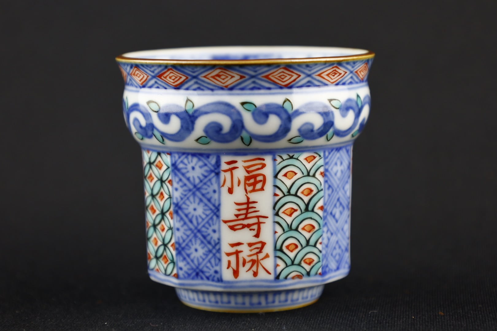 色絵で繊細に細かく祥瑞小紋を描きおめでたい福寿録と銘があります