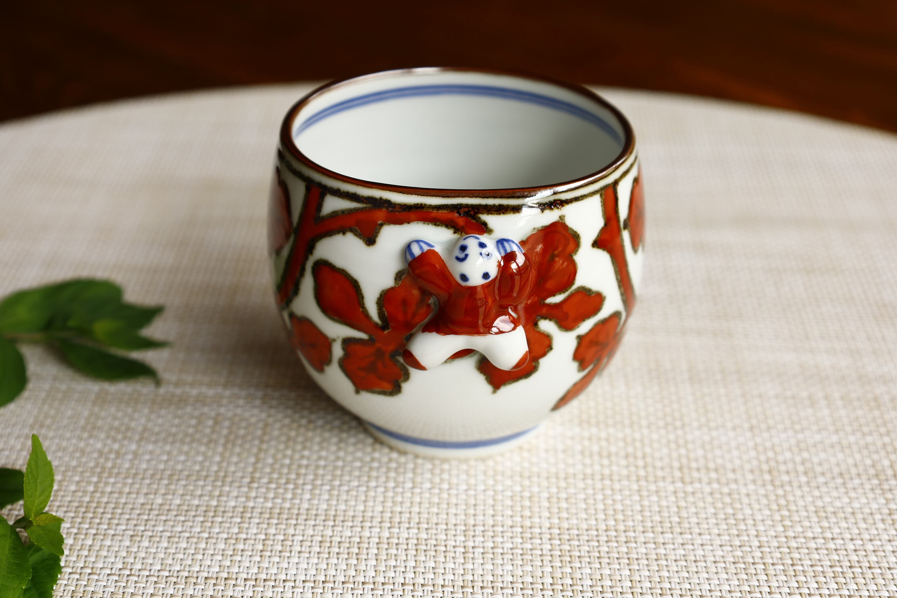 赤絵一閑人葉唐草丸湯呑 TKD040005B