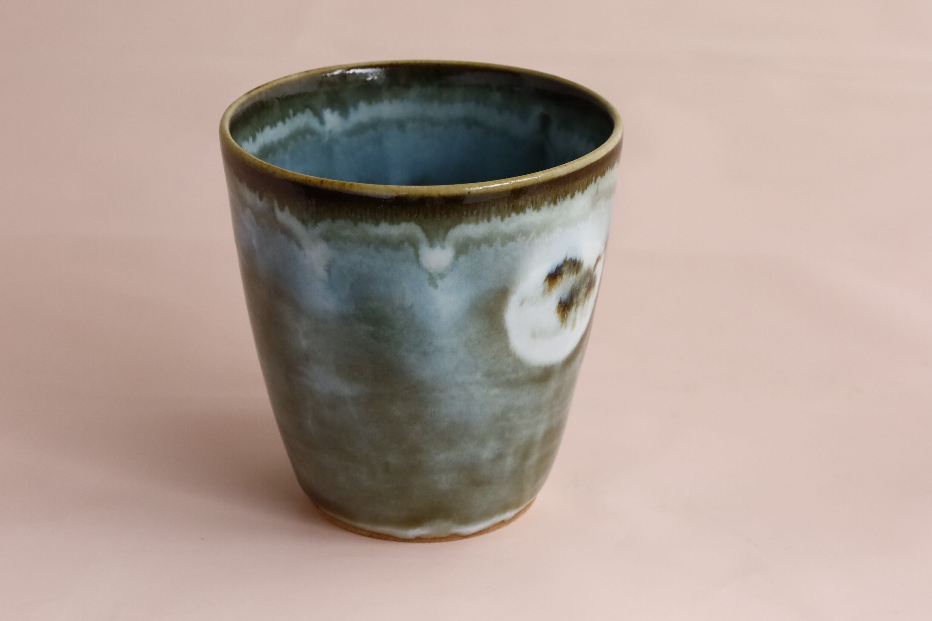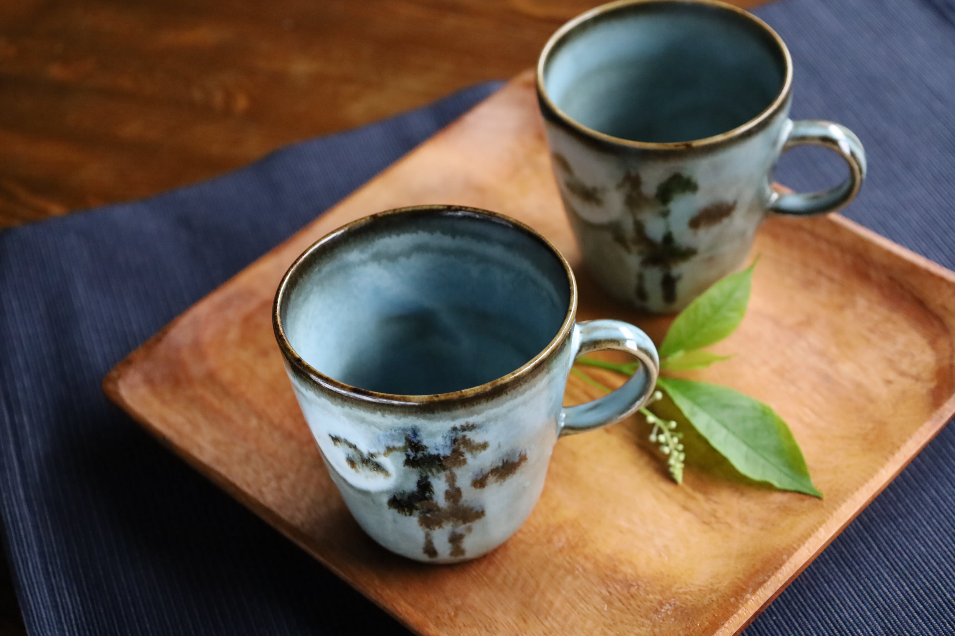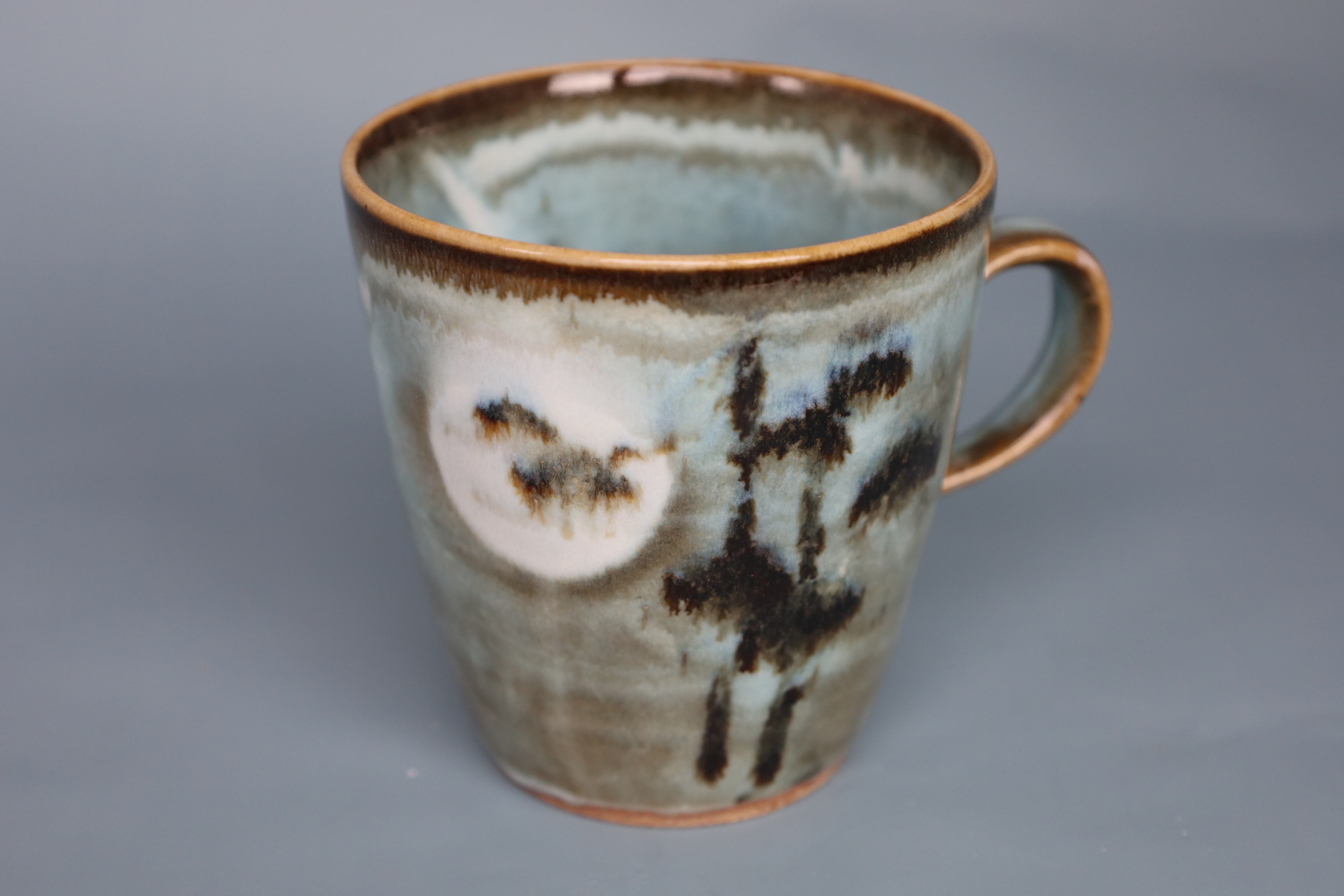 夜空に松がぼやいて見え、とても味わいあるマグカップです