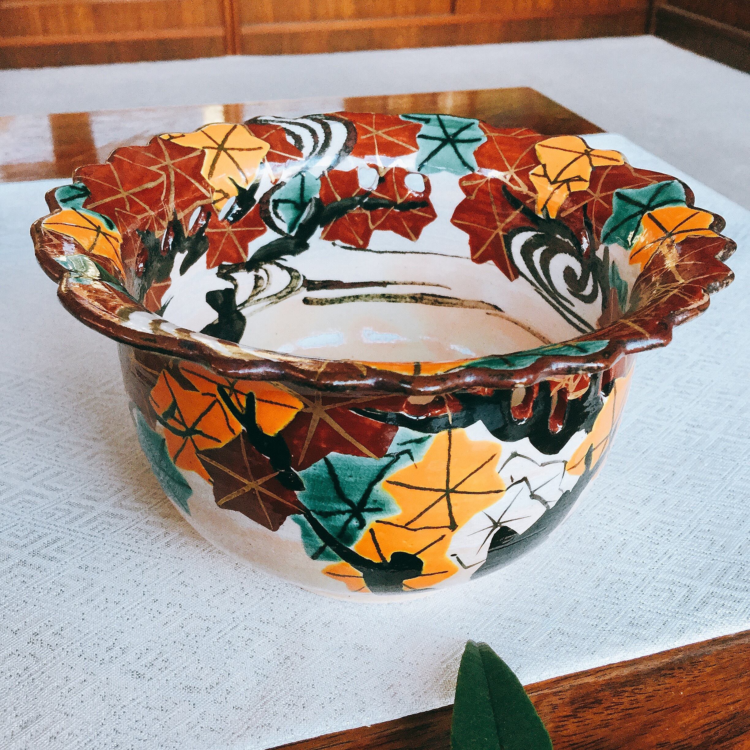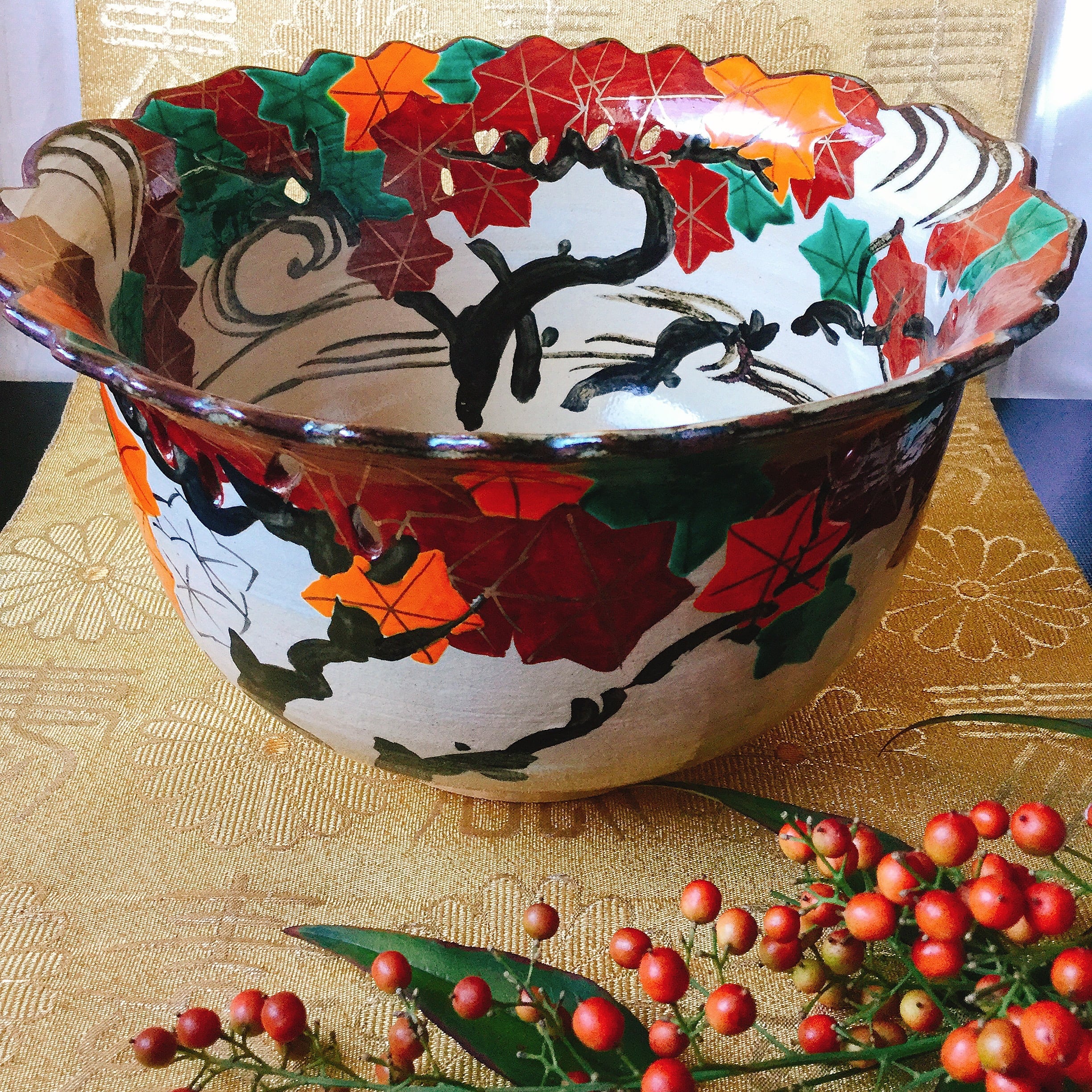 乾山写のもみじを囲んだ絵柄の大鉢です
