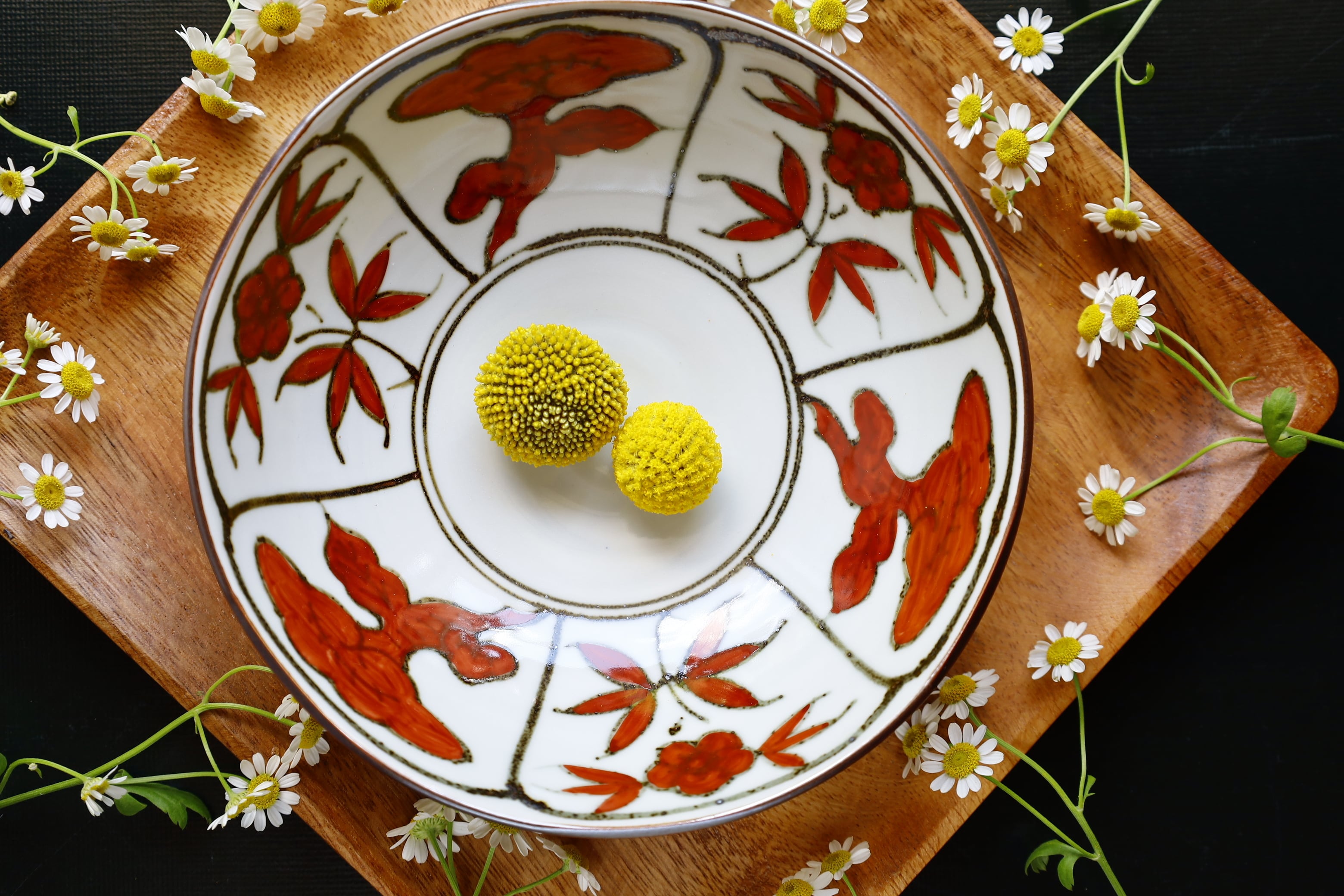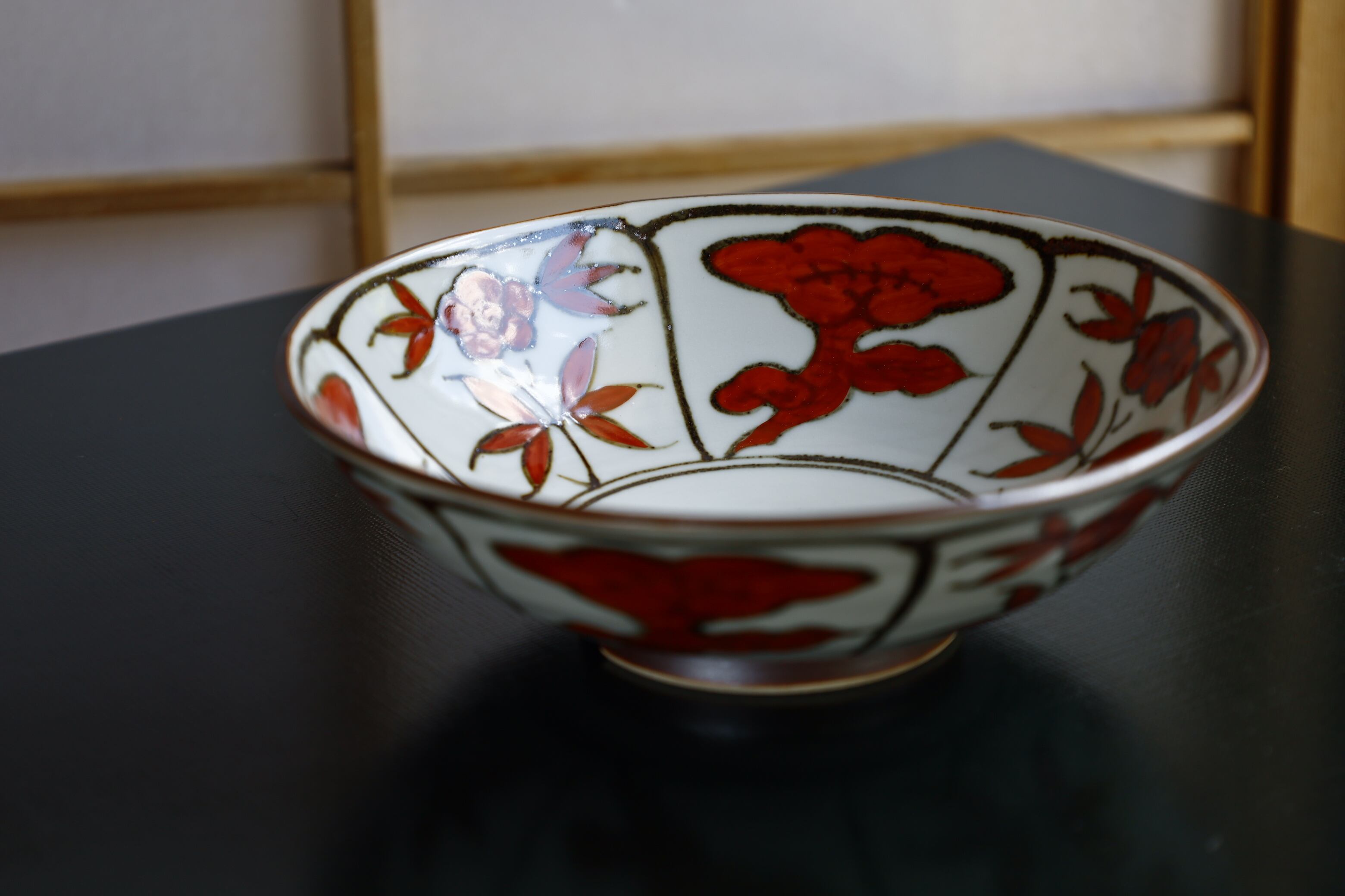 赤絵霊芝紋様6寸鉢 TKD020160B