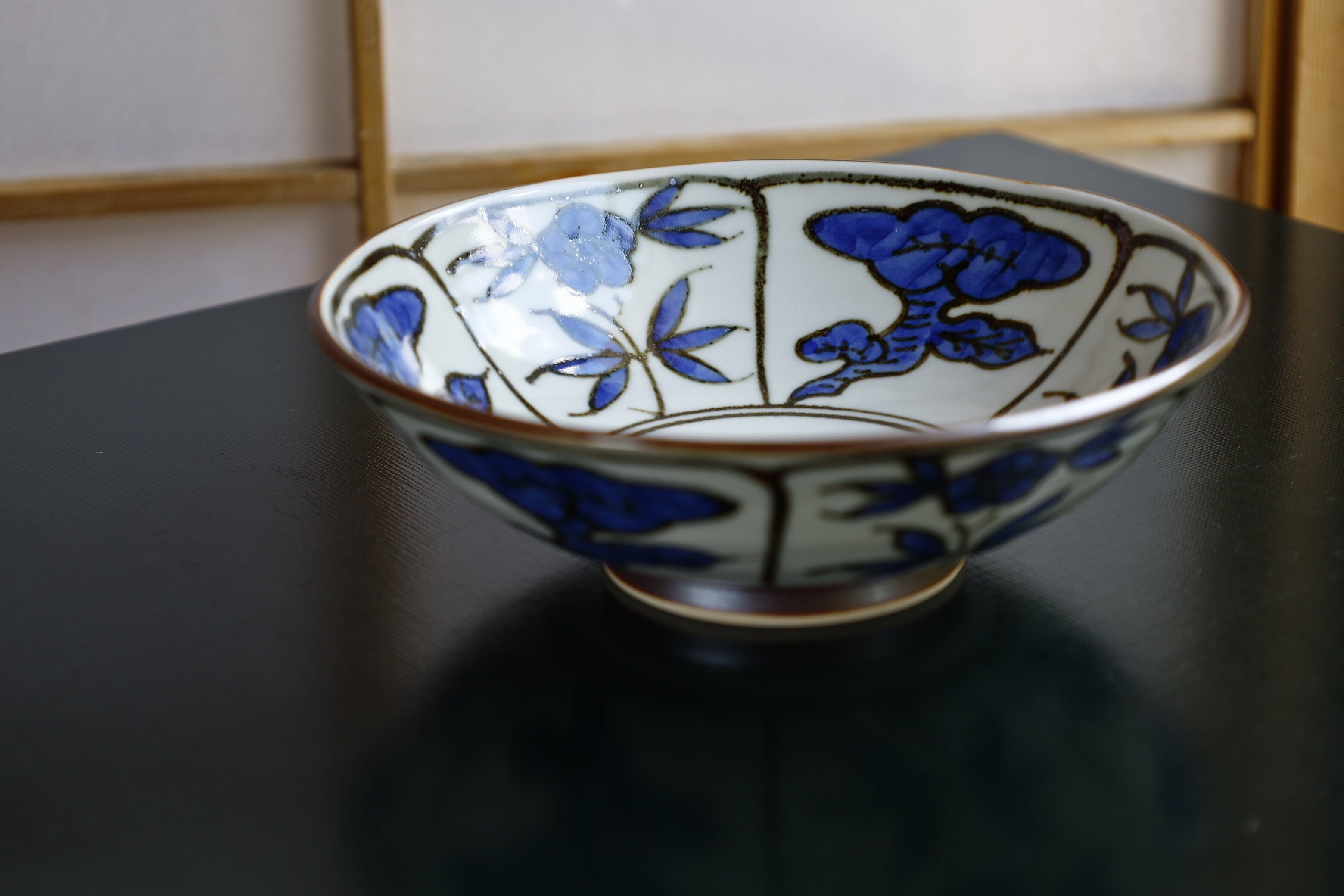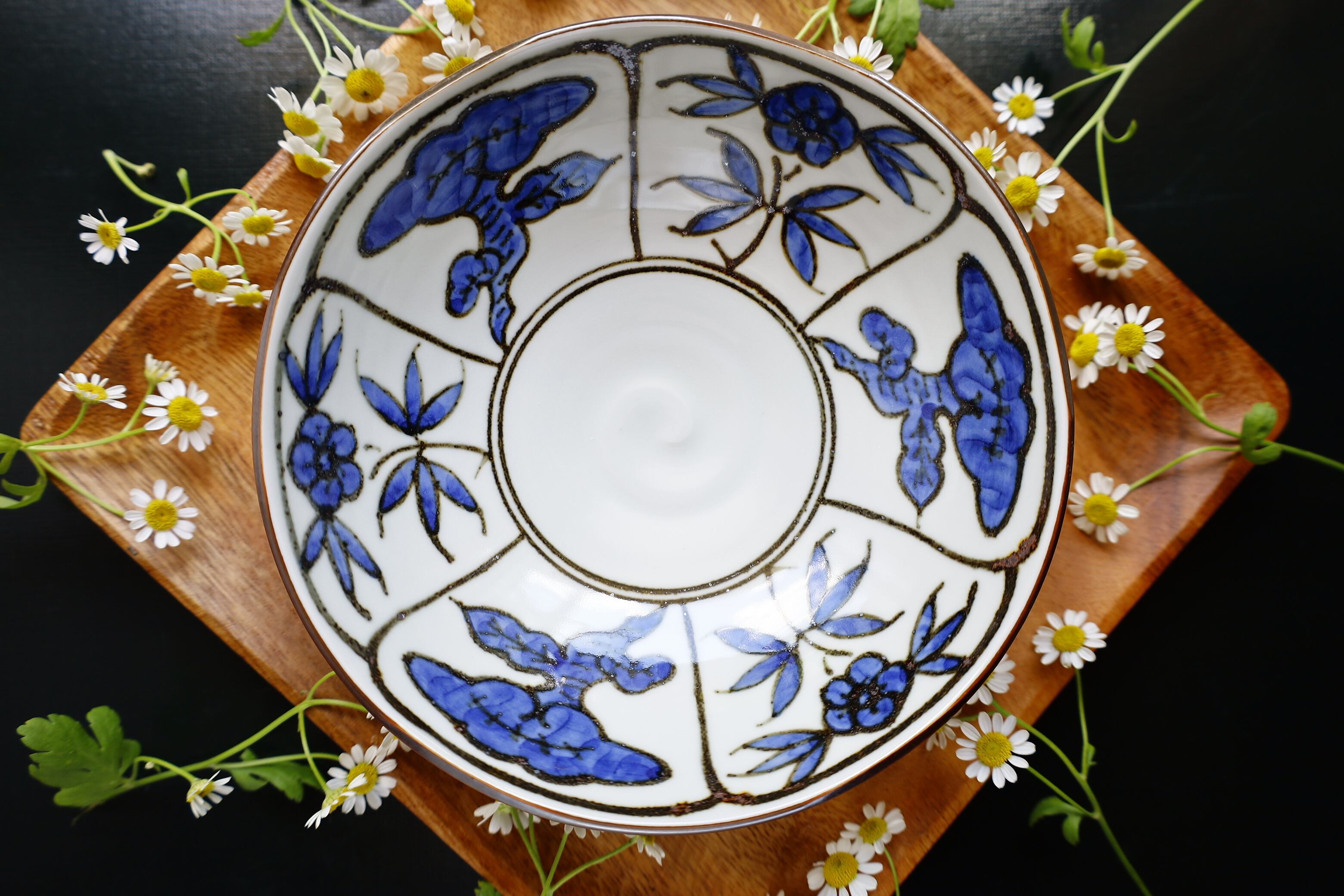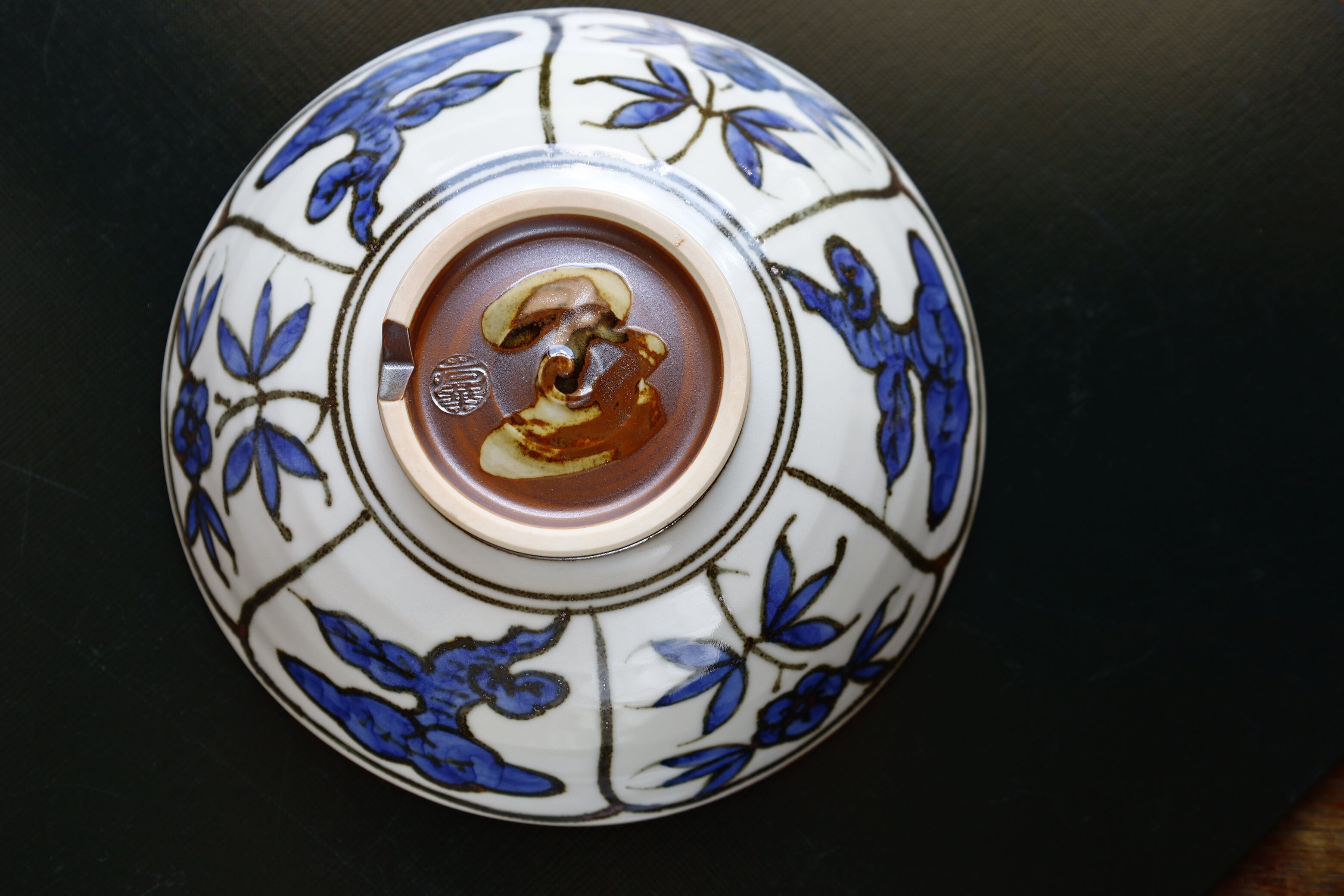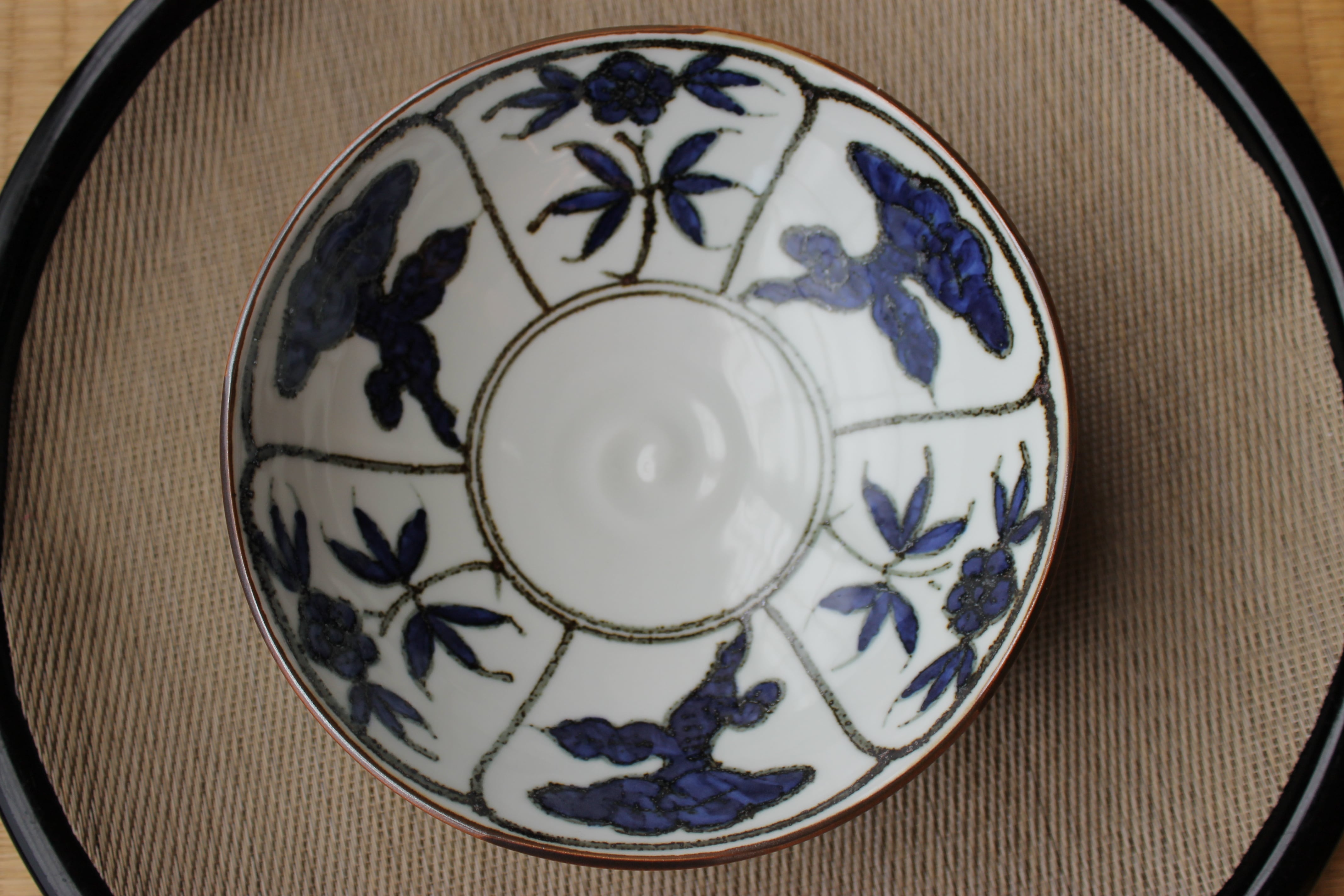 染付で霊芝紋様を描いています