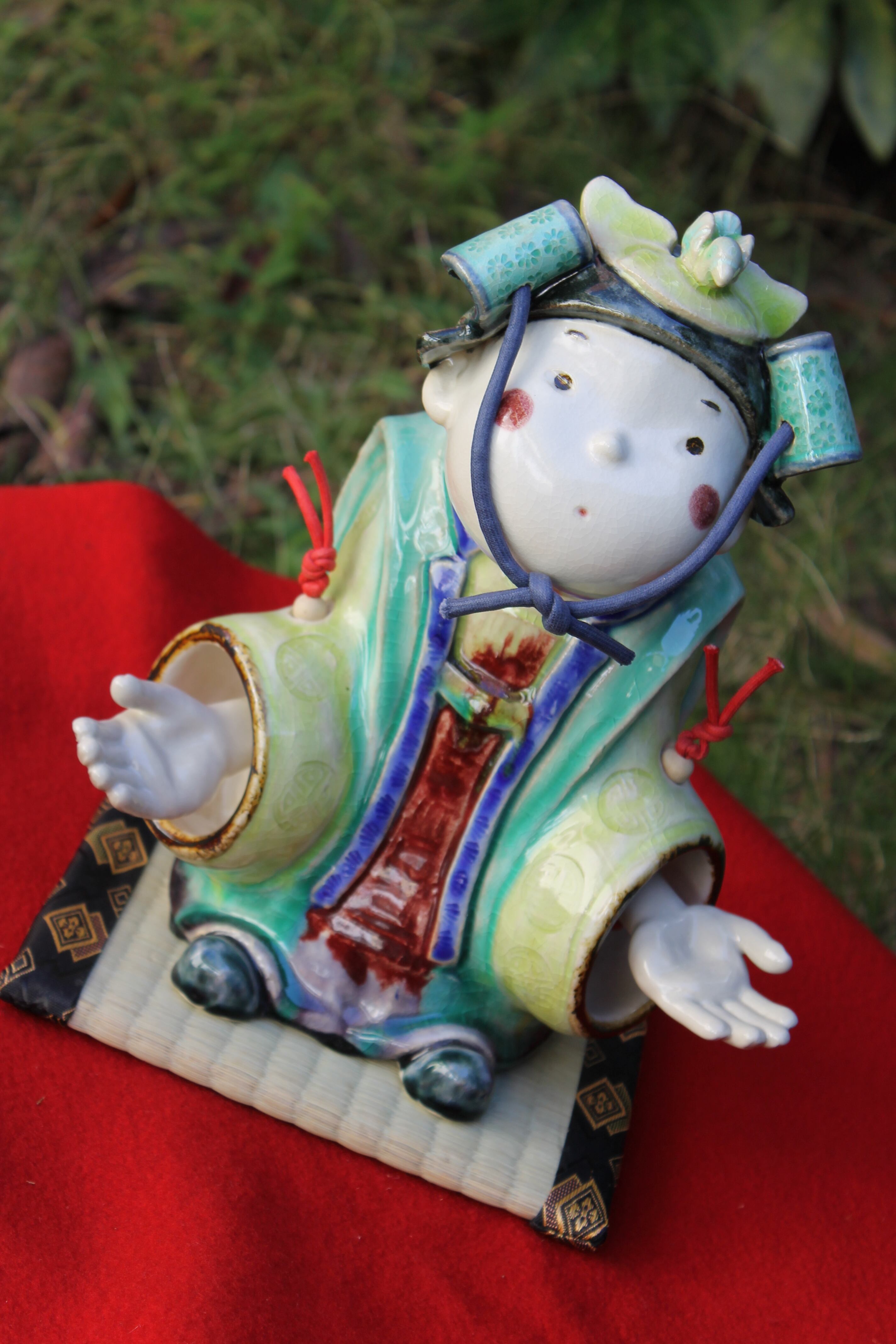陶器でできた陶人形です。兜人形をあしらったお人形です。